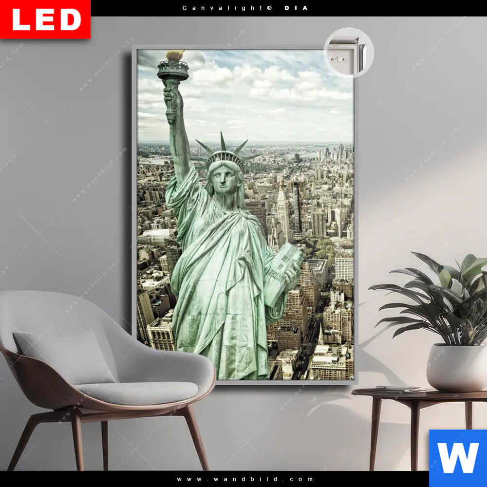 Canvalight® DIA Leuchtbild | Freiheit über Manhattan | Hochformat