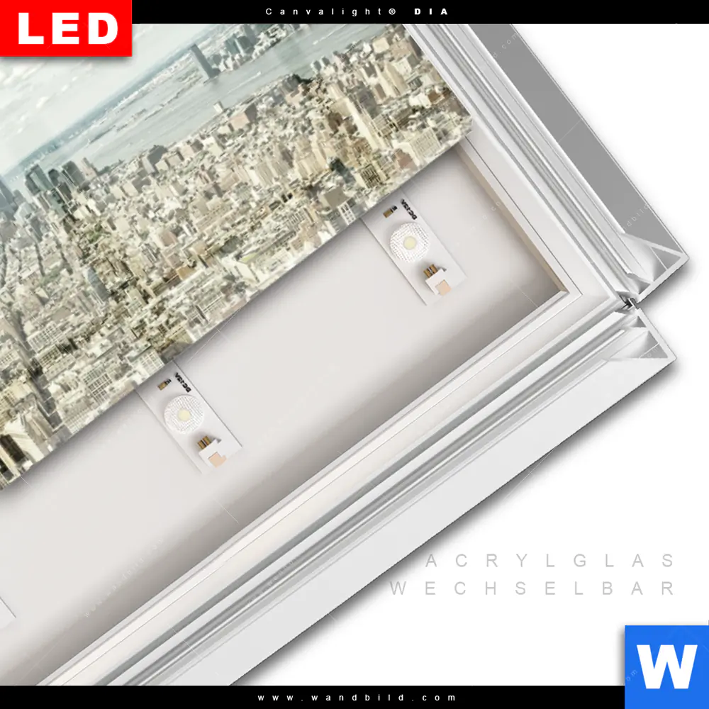 LED-Glasbild mit austauschbarem Acrylglas-Druck (Wechselbild)