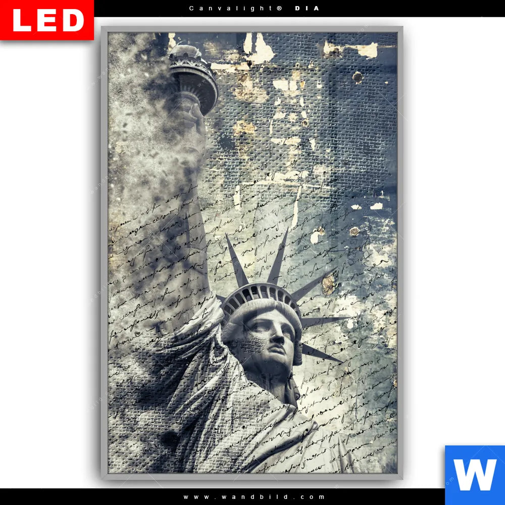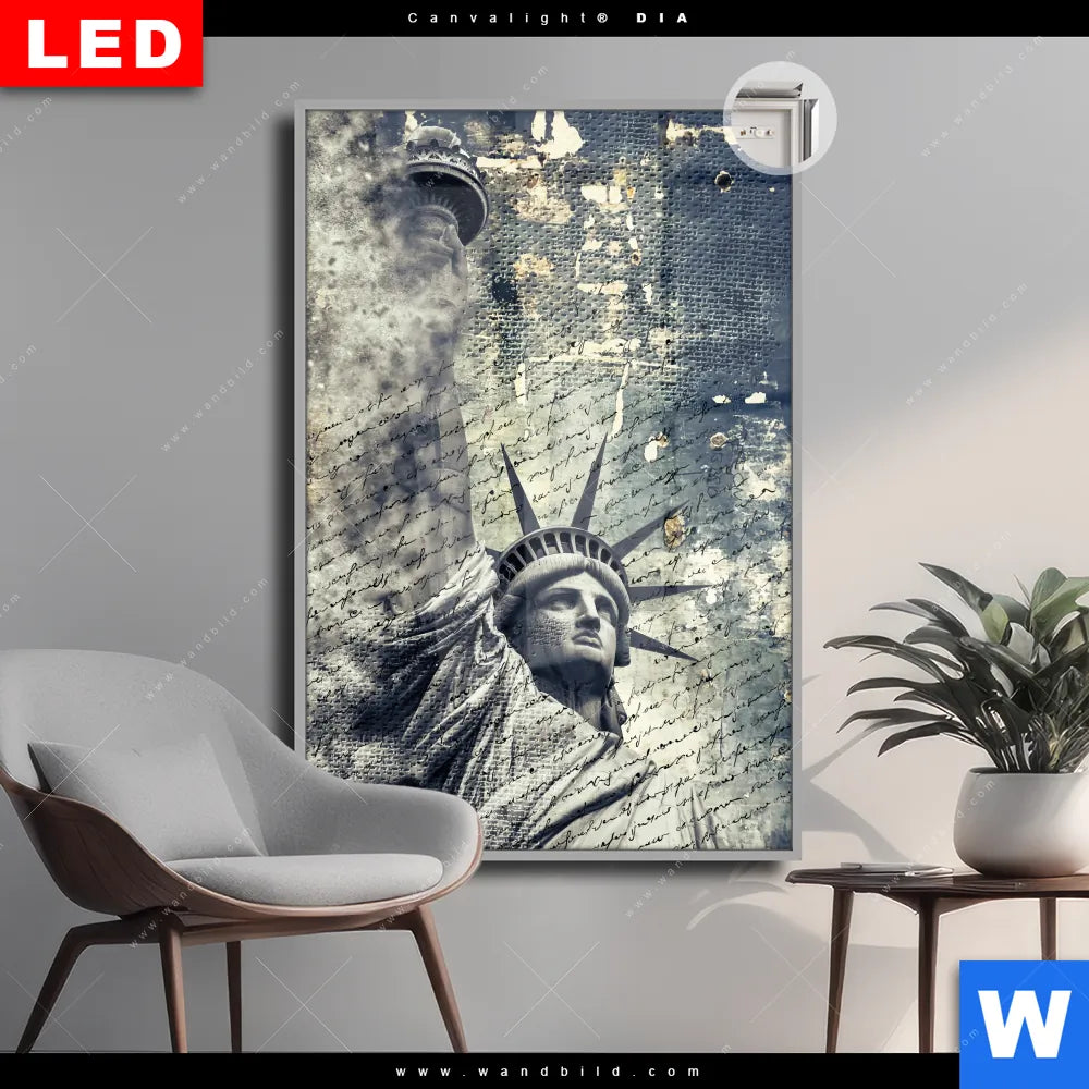 Canvalight® DIA Leuchtbild | Freiheitsstatue im Sandsturm | Hochformat