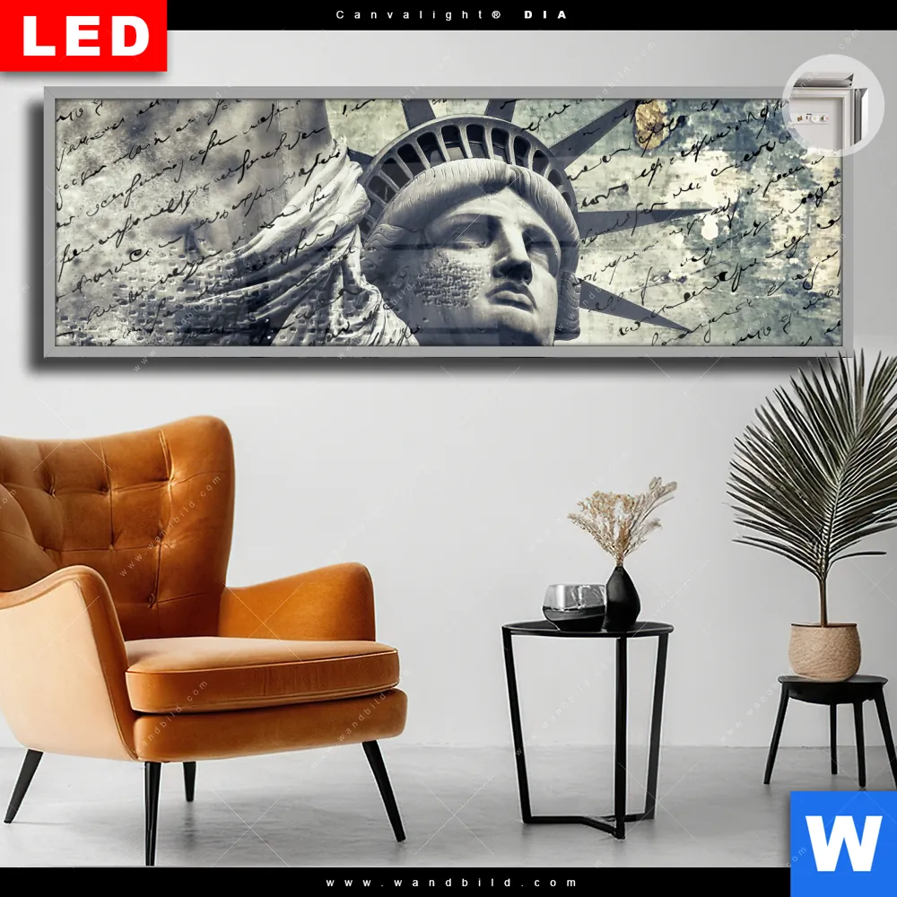 Canvalight® DIA Leuchtbild | Freiheitsstatue im Sandsturm | Panorama