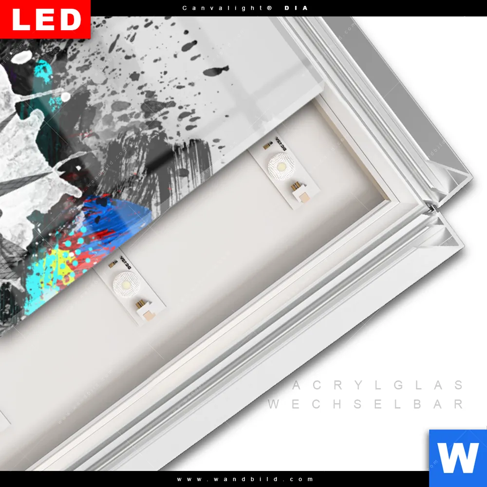 LED-Glasbild mit austauschbarem Acrylglas-Druck (Wechselbild)