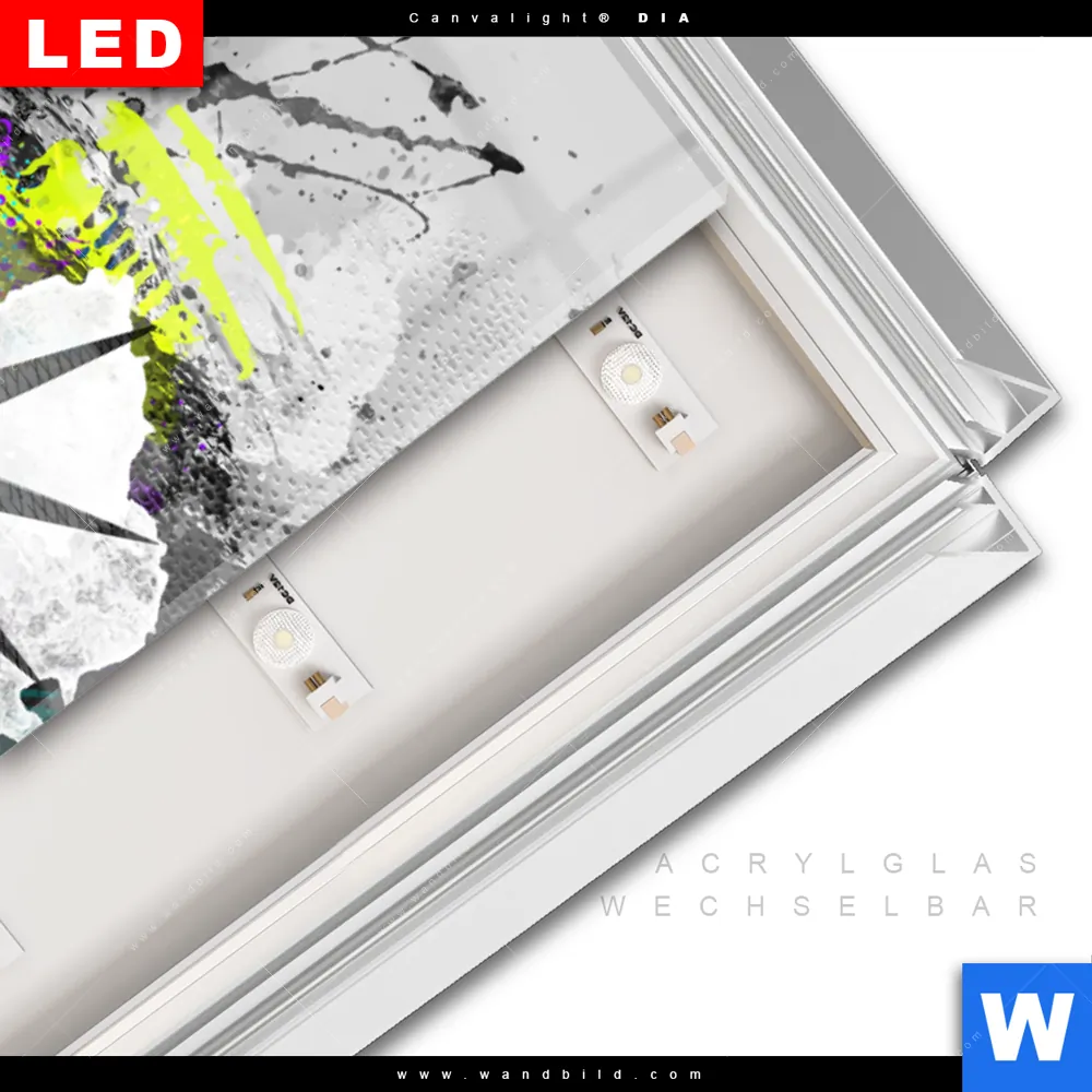 LED-Glasbild mit austauschbarem Acrylglas-Druck (Wechselbild)