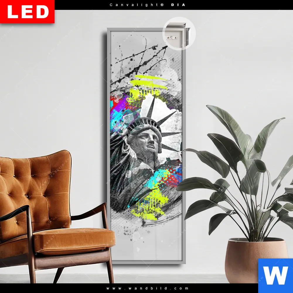 Canvalight® DIA Leuchtbild | Freiheitsstatue Pop Art No.1 | Schmal