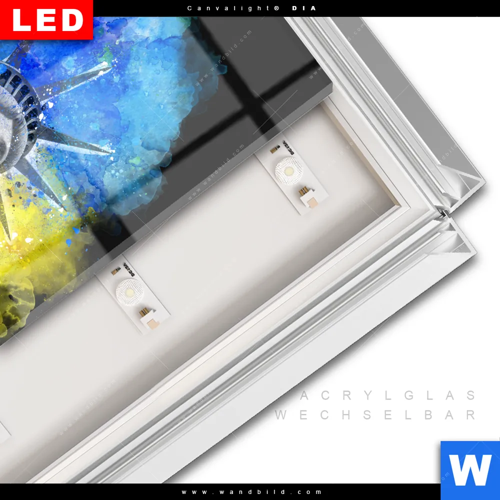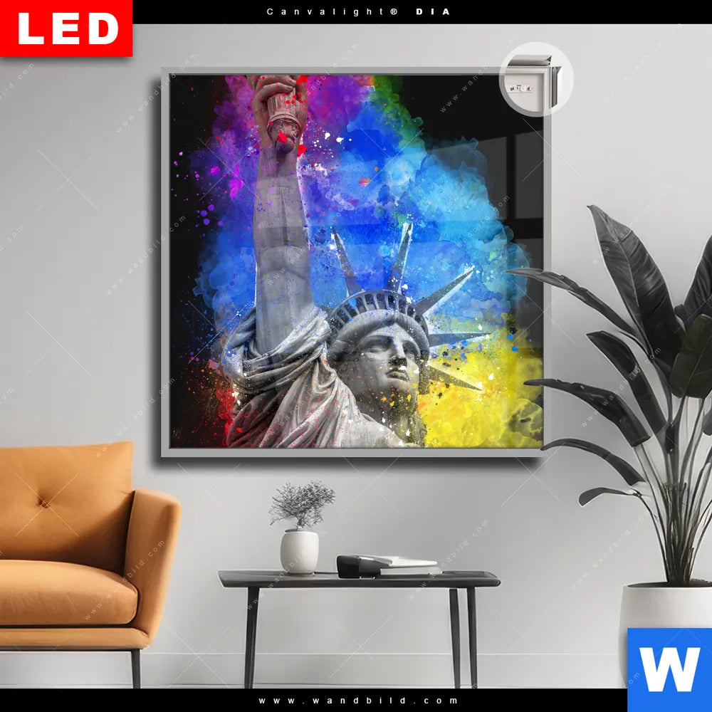 Canvalight® DIA Leuchtbild | Freiheitsstatue Pop Art No.2 | Quadrat
