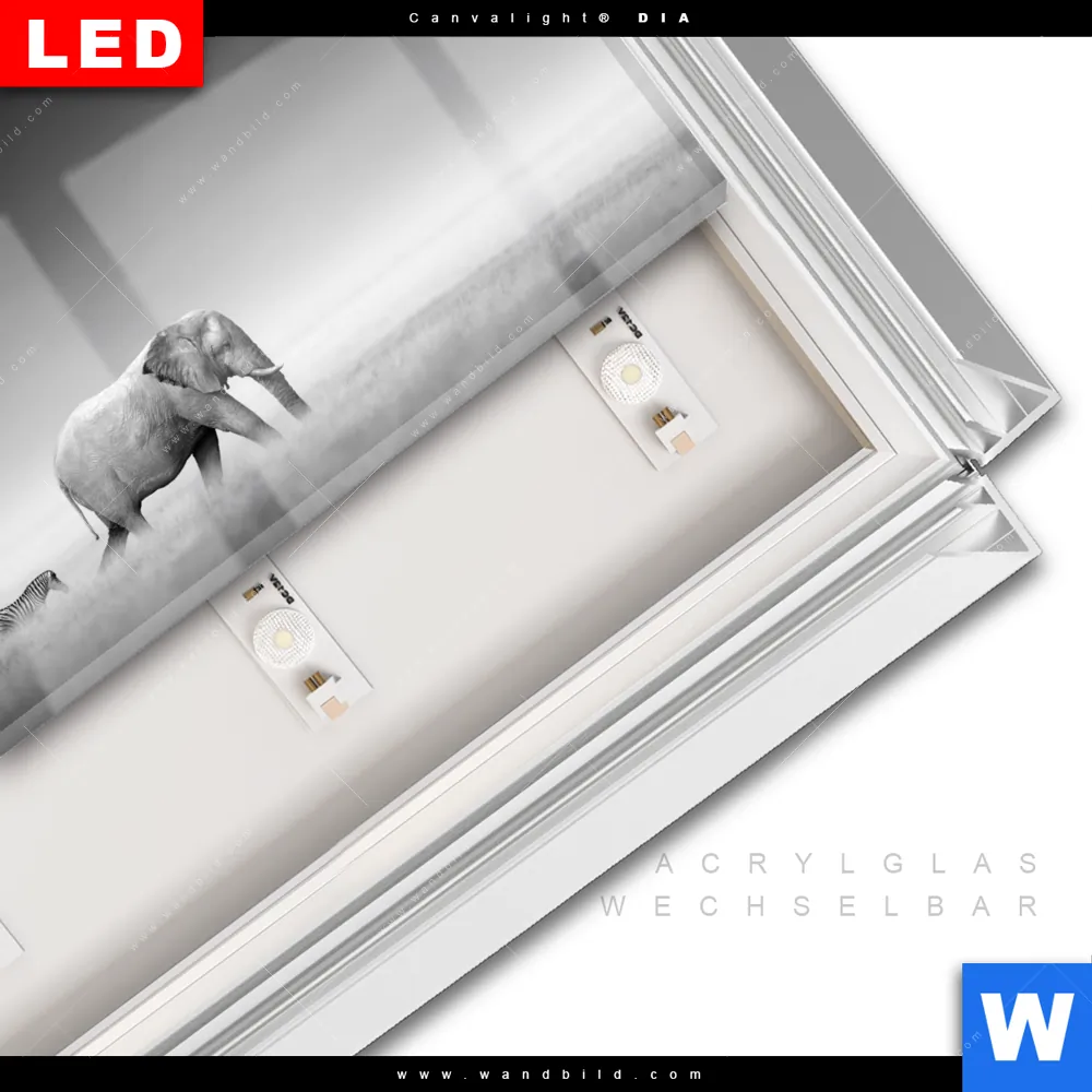 LED-Glasbild mit austauschbarem Acrylglas-Druck (Wechselbild)