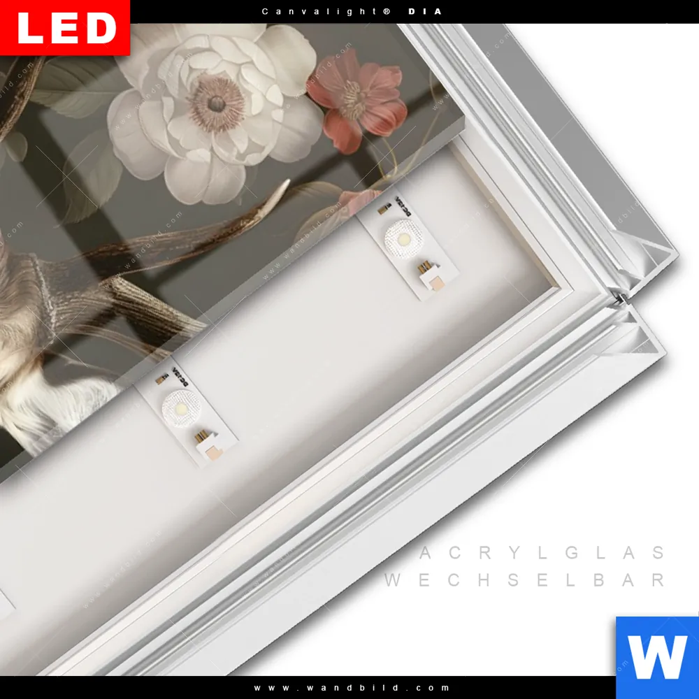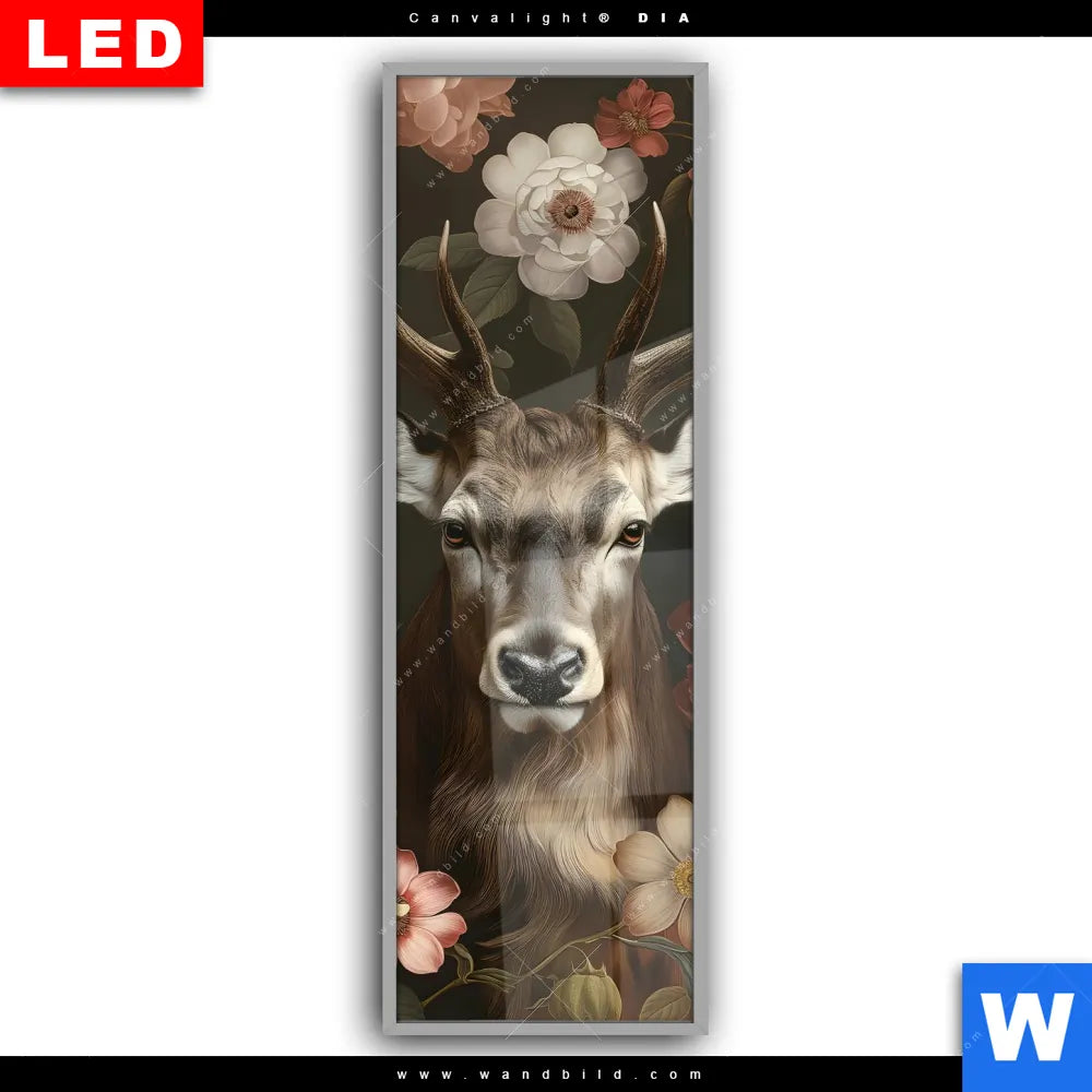 Canvalight® DIA Leuchtbild | Friedlicher Hirsch und Blüten | Schmal
