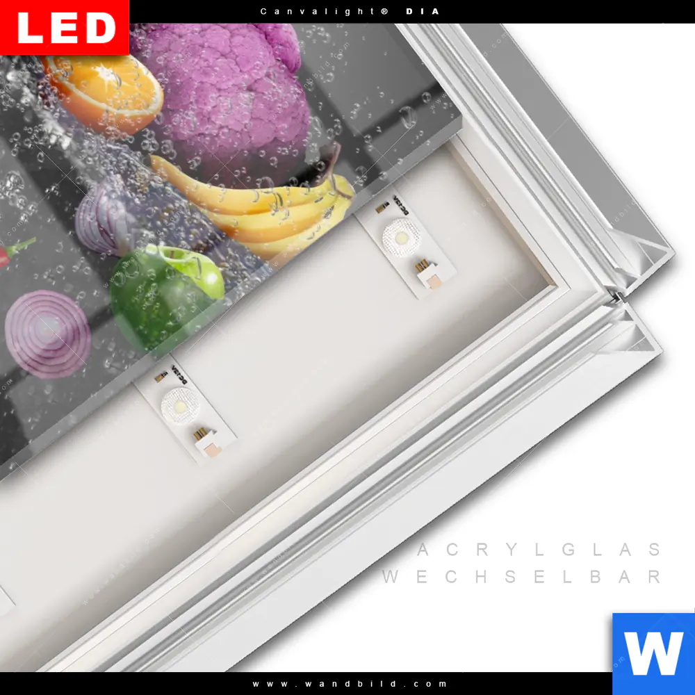 LED-Glasbild mit austauschbarem Acrylglas-Druck (Wechselbild)