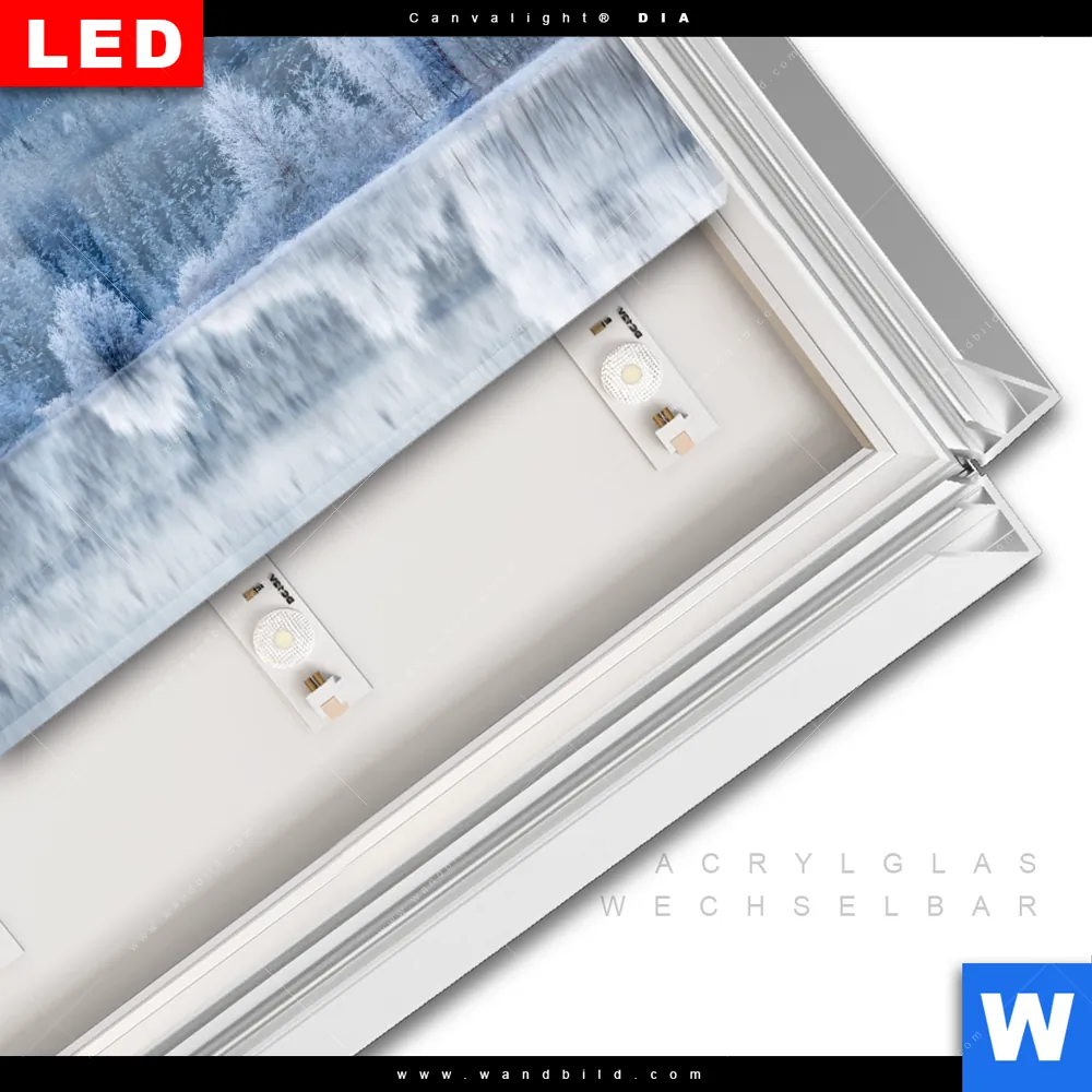 LED-Glasbild mit austauschbarem Acrylglas-Druck (Wechselbild)