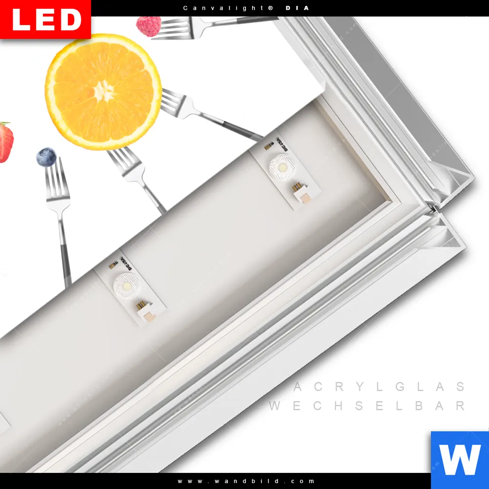 LED-Glasbild mit austauschbarem Acrylglas-Druck (Wechselbild)