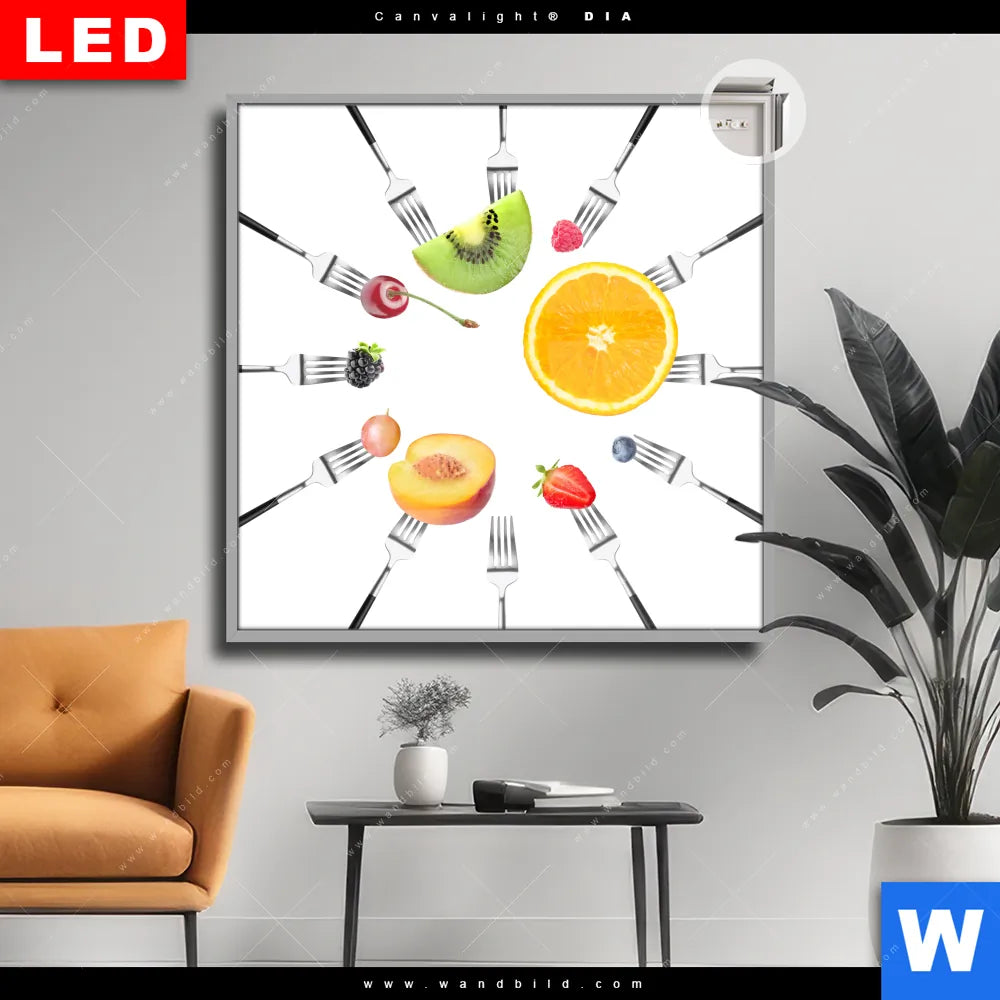 Canvalight® DIA Leuchtbild | Früchte auf Gabeln | Quadrat