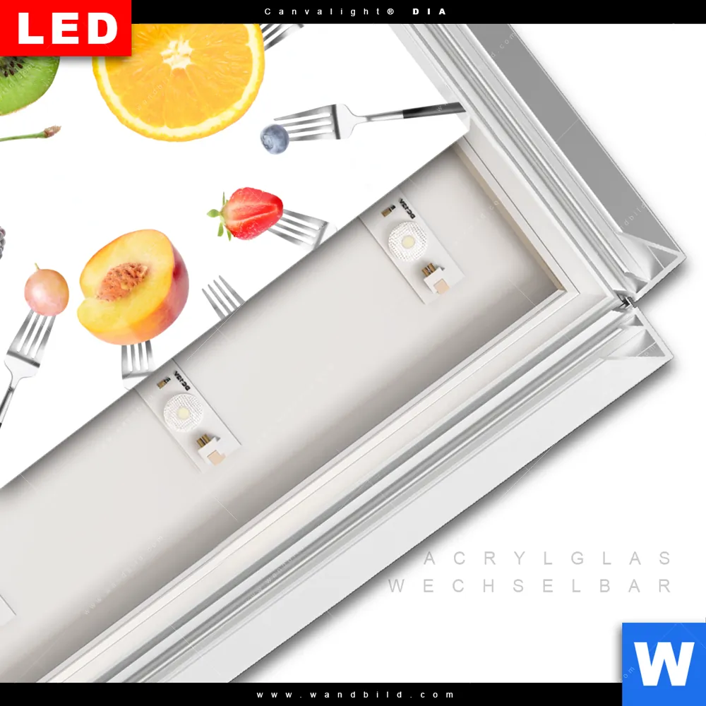 Canvalight® DIA Leuchtbild | Früchte auf Gabeln | Querformat