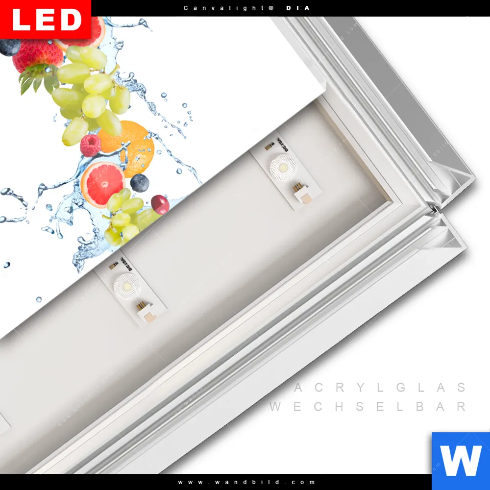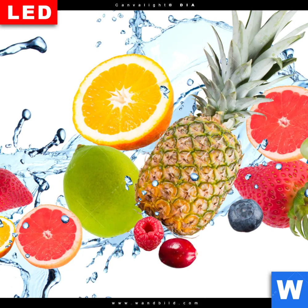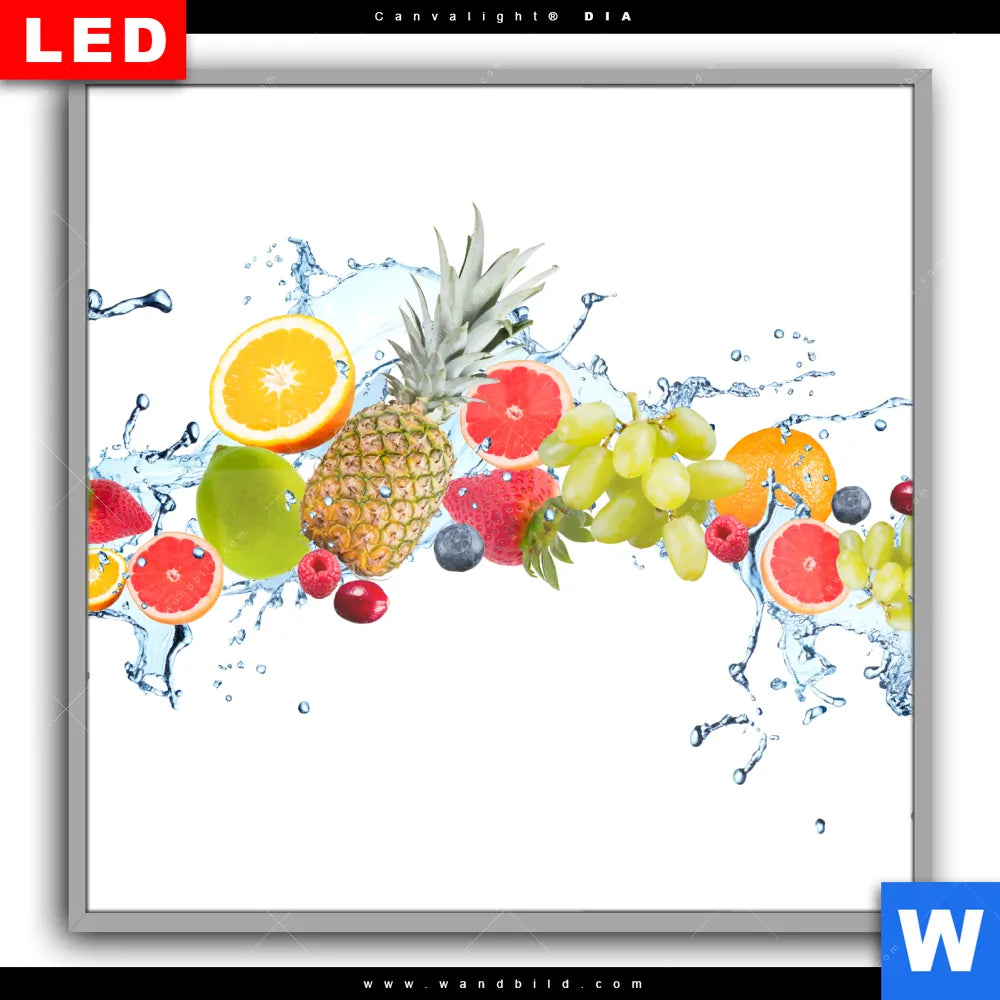 Canvalight® DIA Leuchtbild | Früchte in Spritzwasser | Quadrat