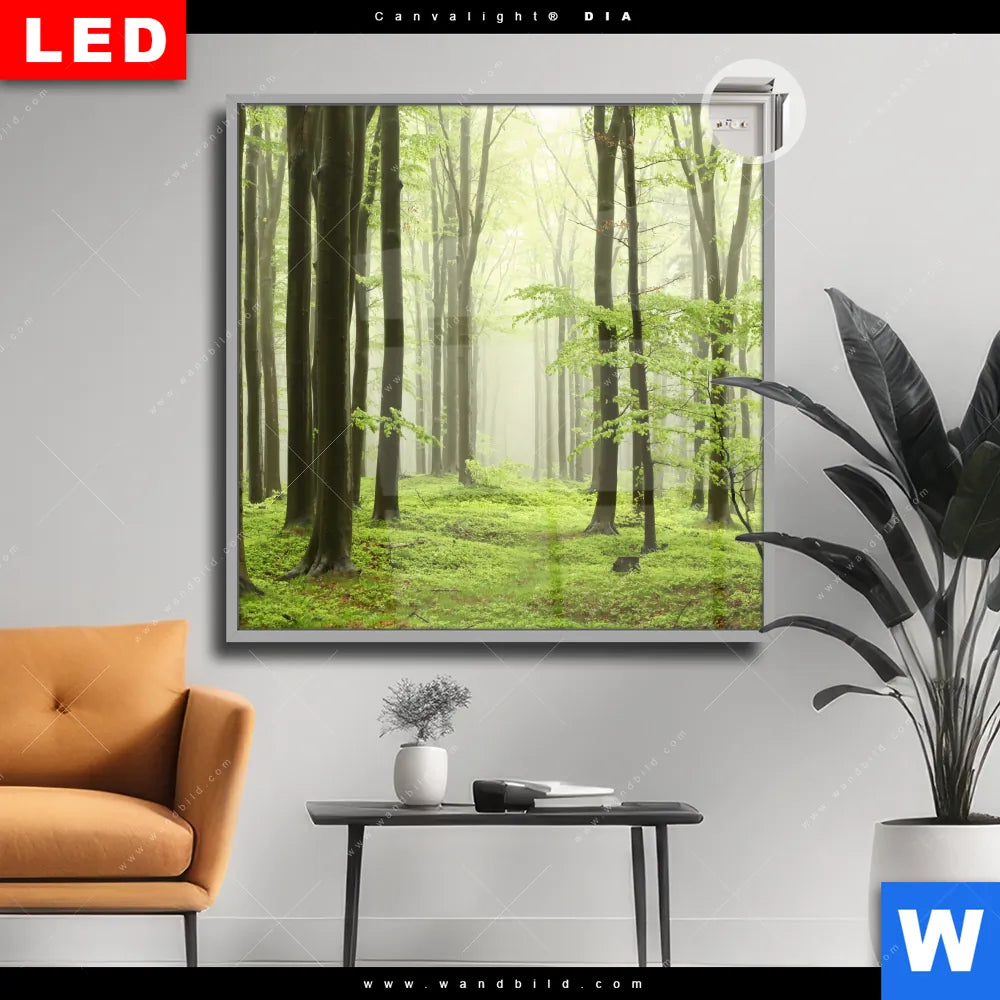 Canvalight® DIA Leuchtbild | Frühling im Buchenwald | Quadrat
