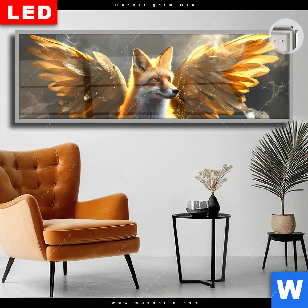 Leuchtbild Acrylglas Canvalight® DIA | Fuchs mit goldenen Flügeln | Panorama