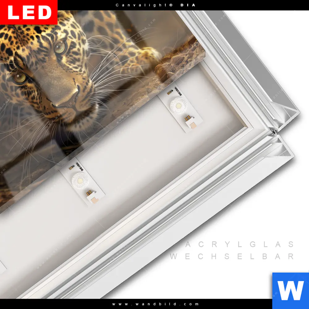 LED-Glasbild mit austauschbarem Acrylglas-Druck (Wechselbild)