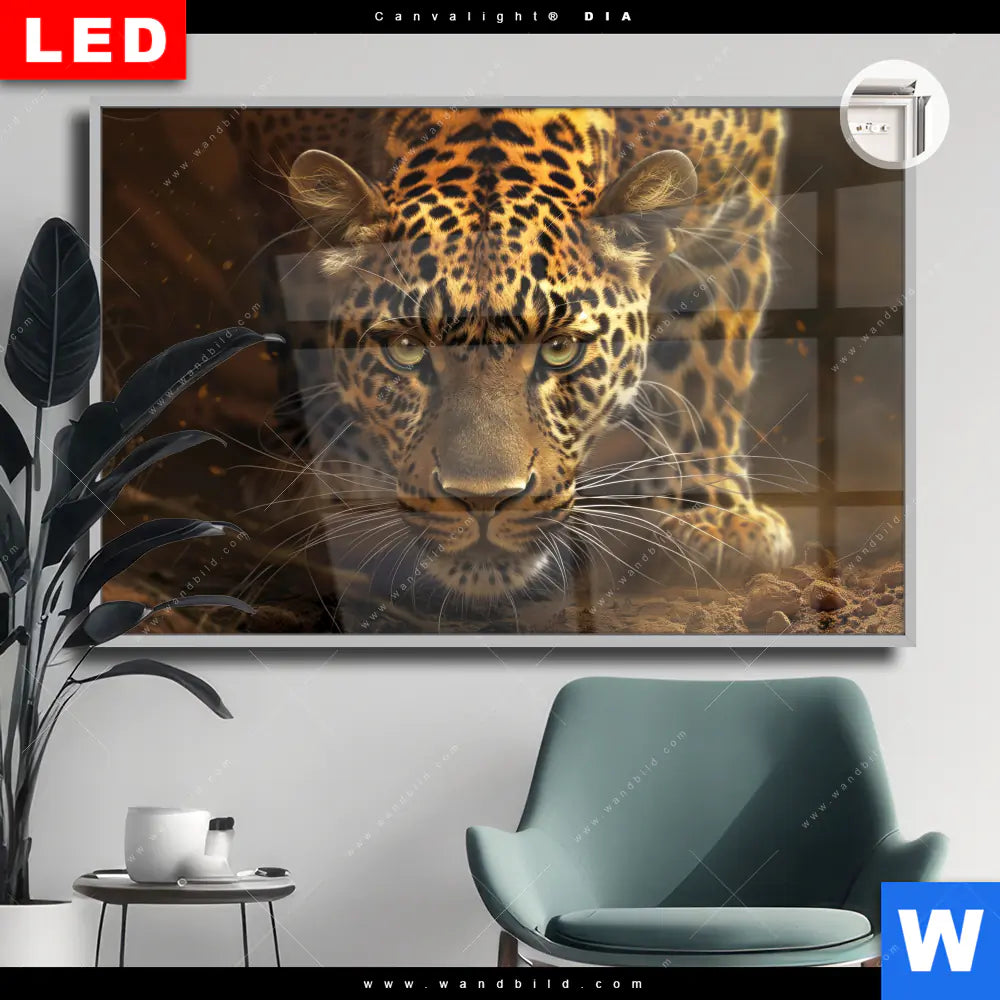 Leuchtbild Acrylglas Canvalight® DIA | Geheimnisvoller Leopard | Querformat