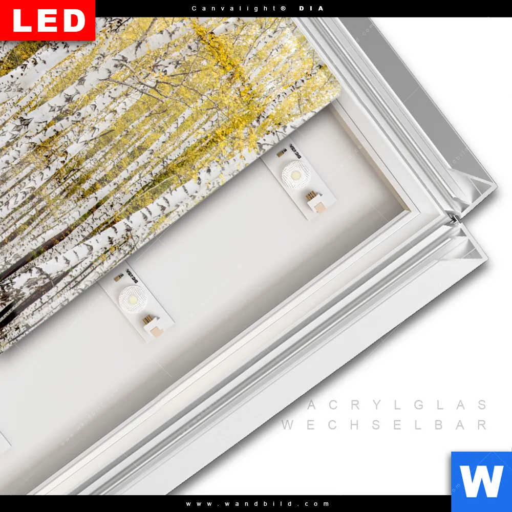 LED-Glasbild mit austauschbarem Acrylglas-Druck (Wechselbild)