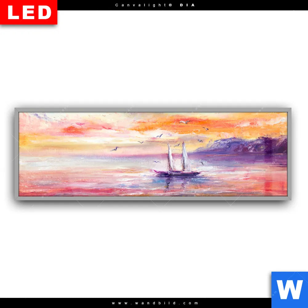 Canvalight® DIA Leuchtbild | Gemälde mit Boot im Sonnenuntergang | Panorama