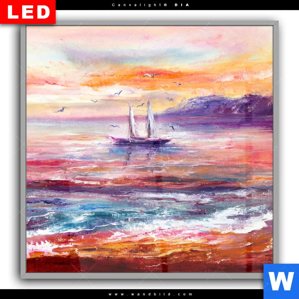 Canvalight® DIA Leuchtbild | Gemälde mit Boot im Sonnenuntergang | Quadrat