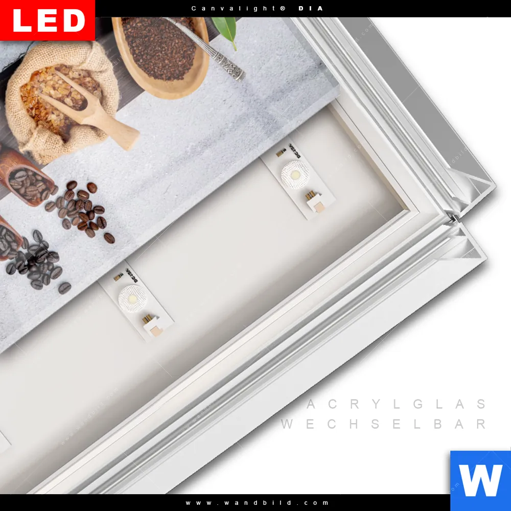 LED-Glasbild mit austauschbarem Acrylglas-Druck (Wechselbild)