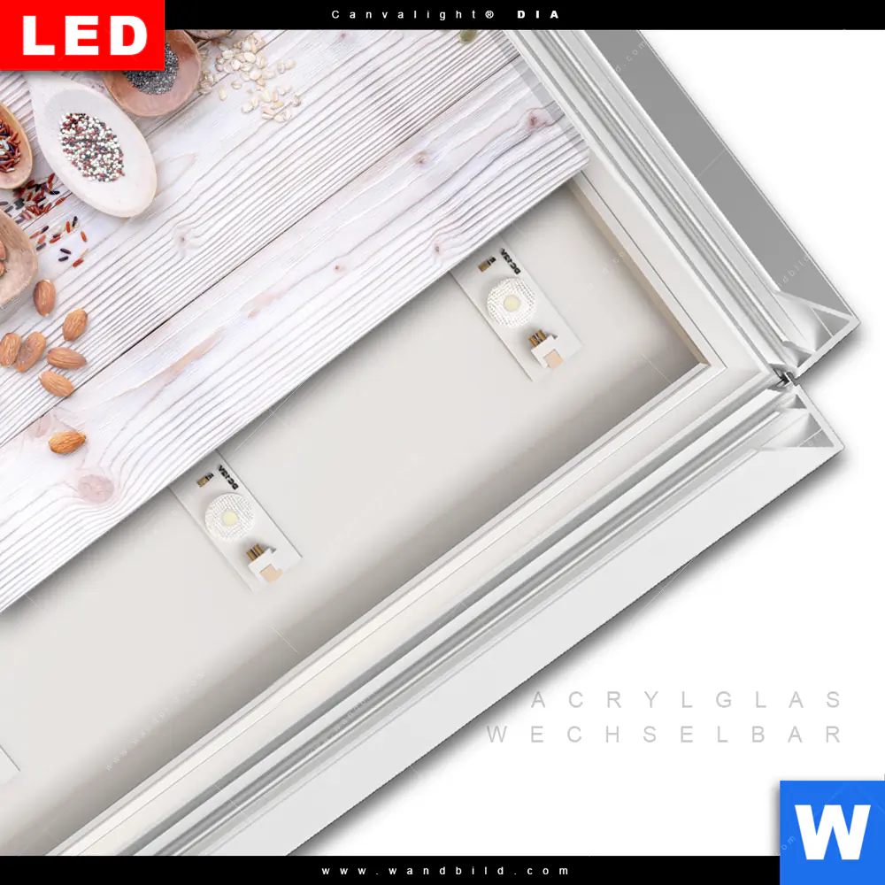 LED-Glasbild mit austauschbarem Acrylglas-Druck (Wechselbild)