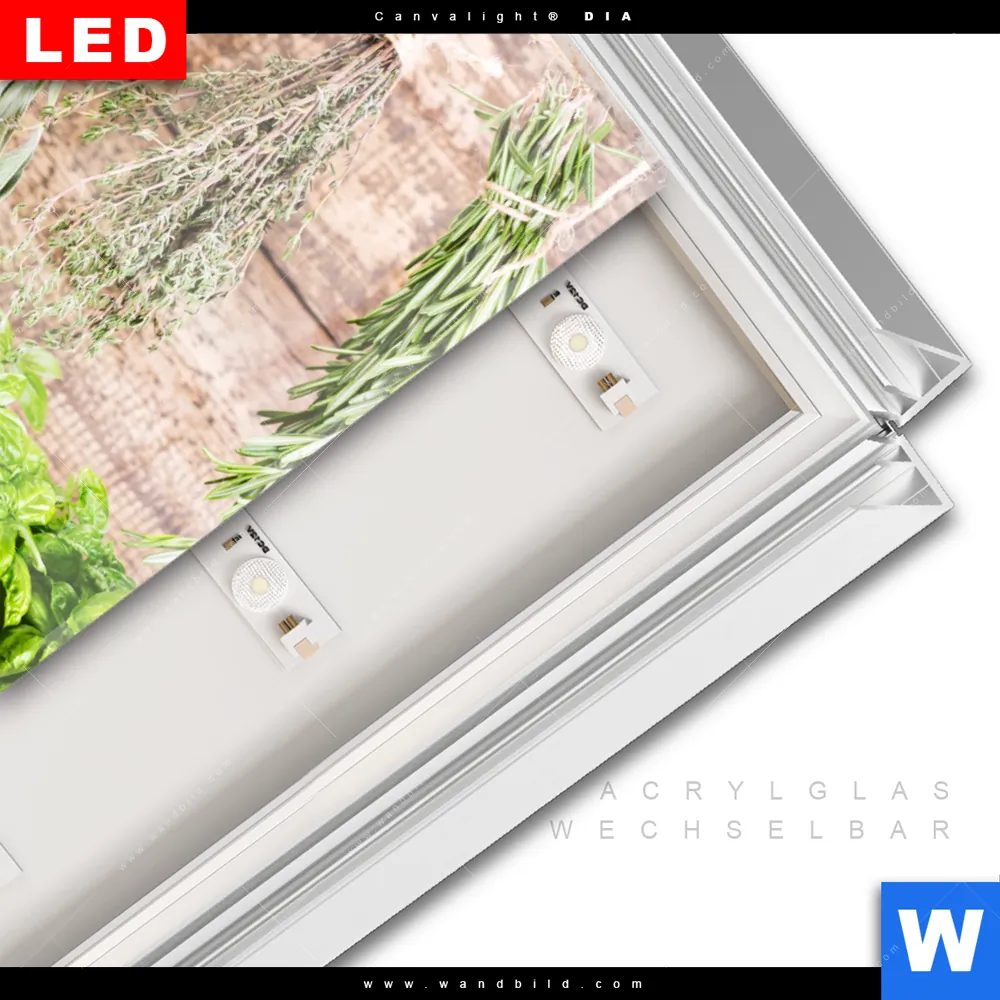 LED-Glasbild mit austauschbarem Acrylglas-Druck (Wechselbild)