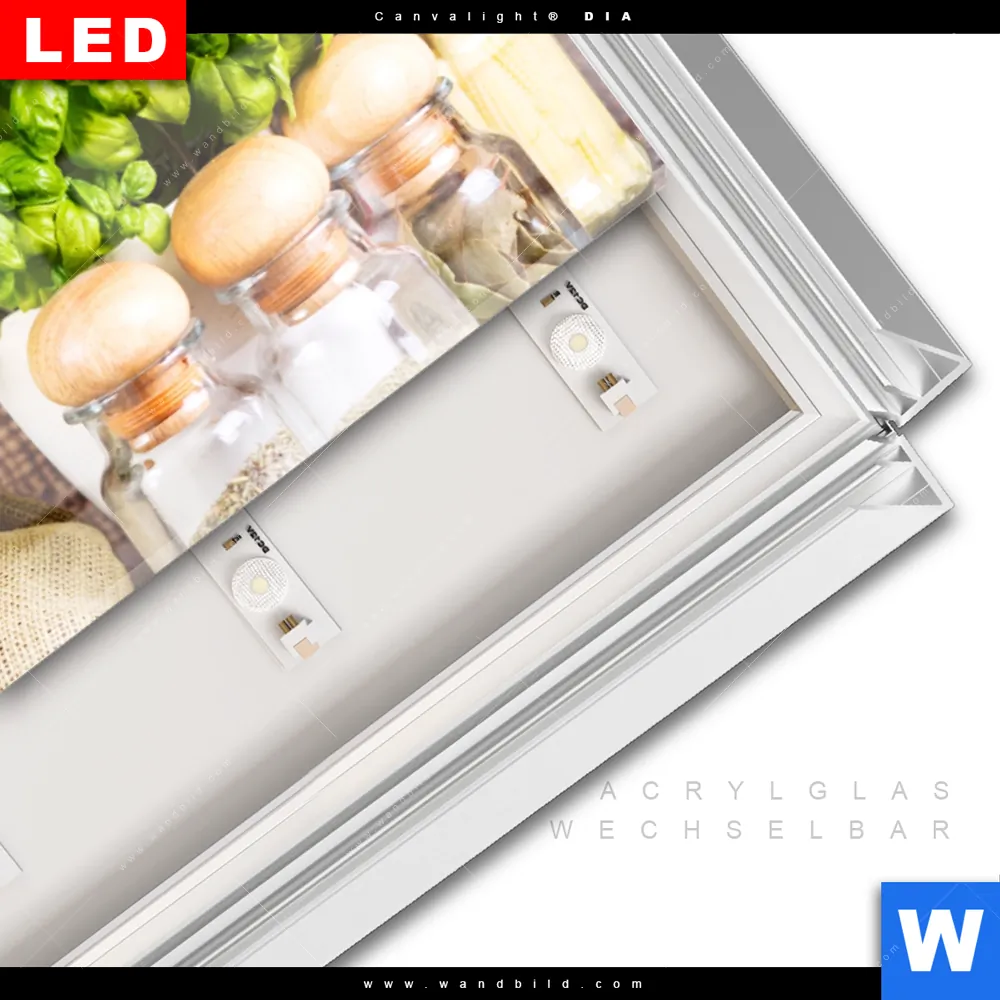 LED-Glasbild mit austauschbarem Acrylglas-Druck (Wechselbild)