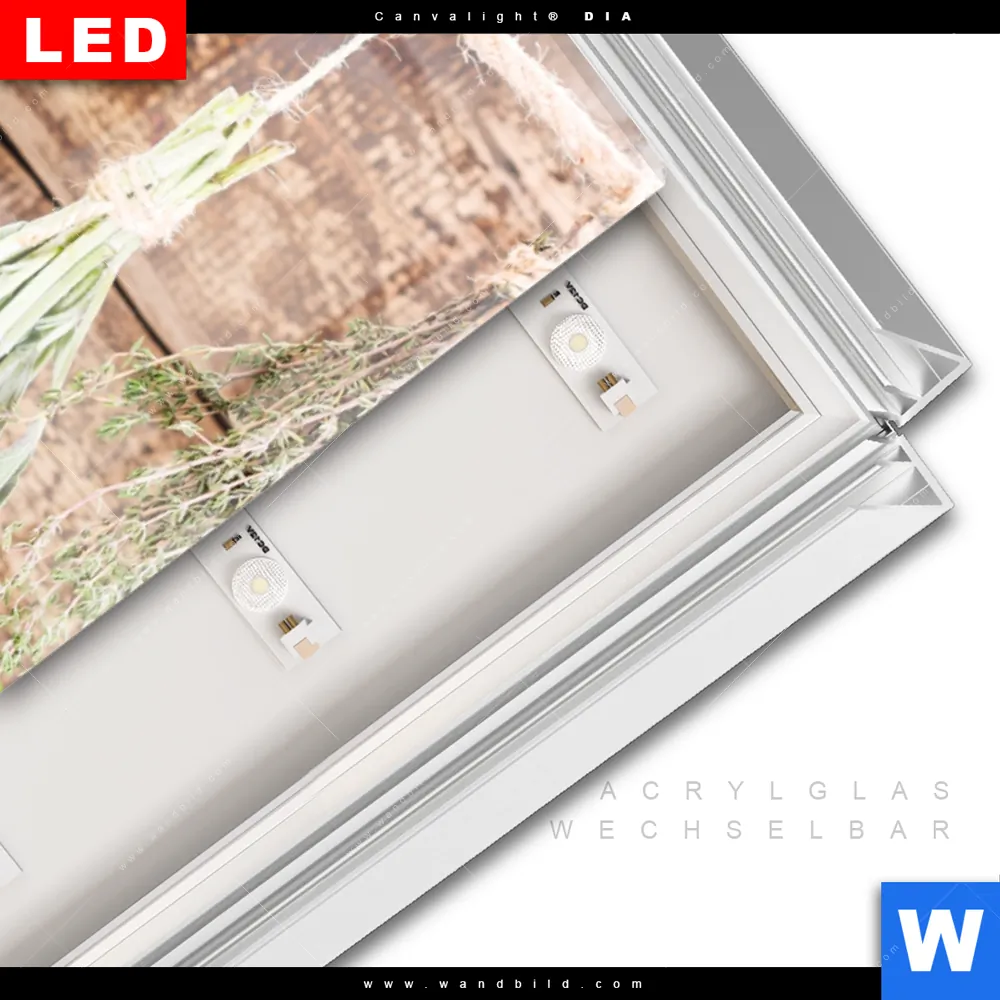 LED-Glasbild mit austauschbarem Acrylglas-Druck (Wechselbild)
