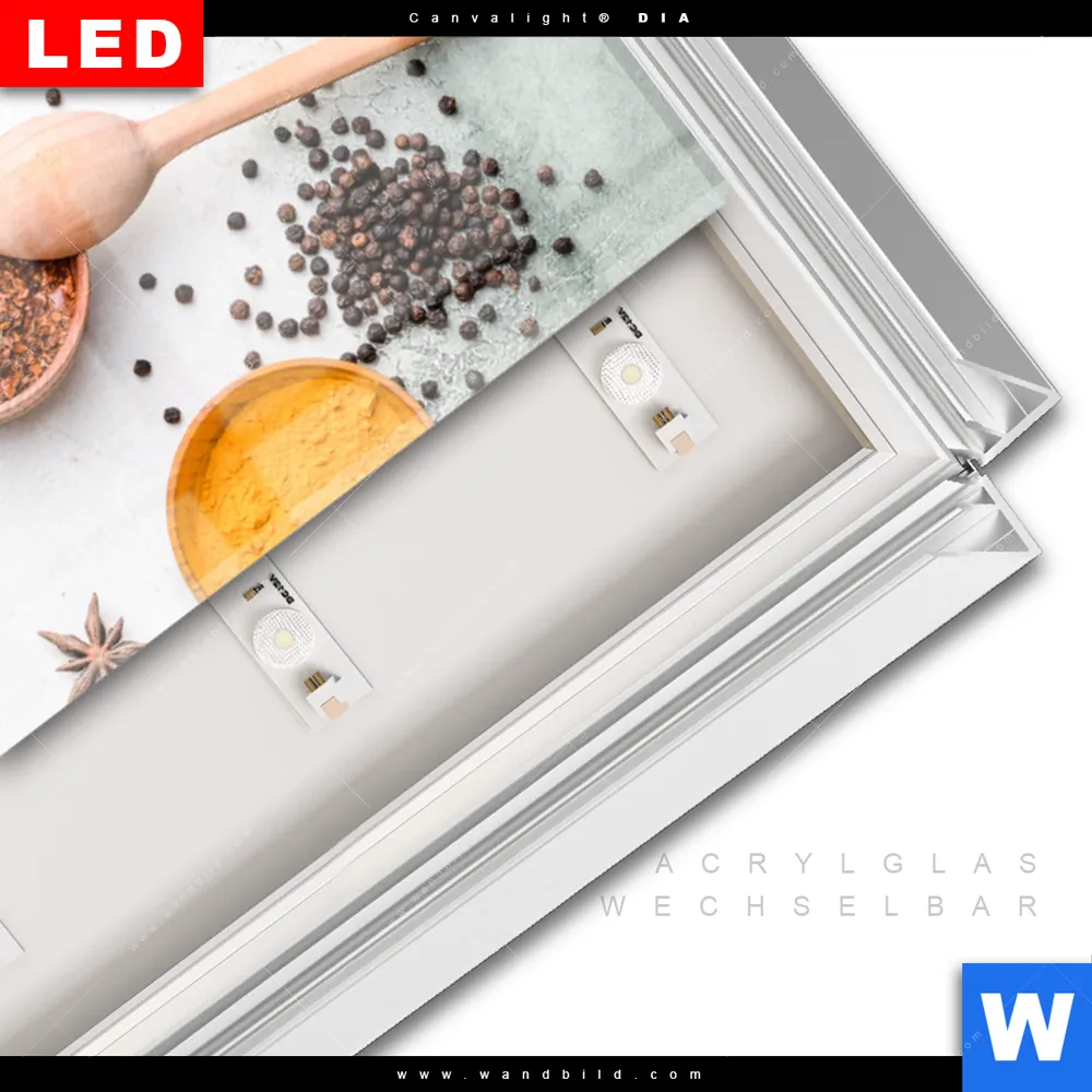 LED-Glasbild mit austauschbarem Acrylglas-Druck (Wechselbild)