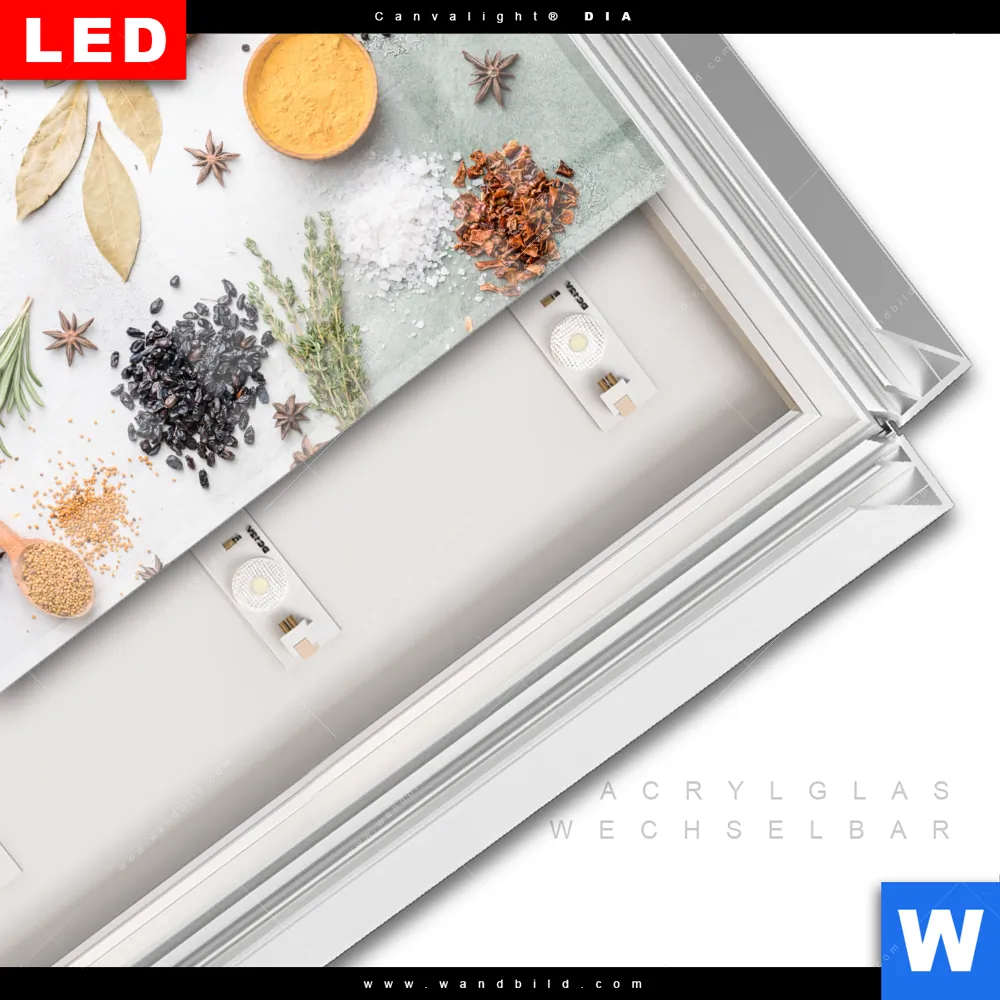 LED-Glasbild mit austauschbarem Acrylglas-Druck (Wechselbild)