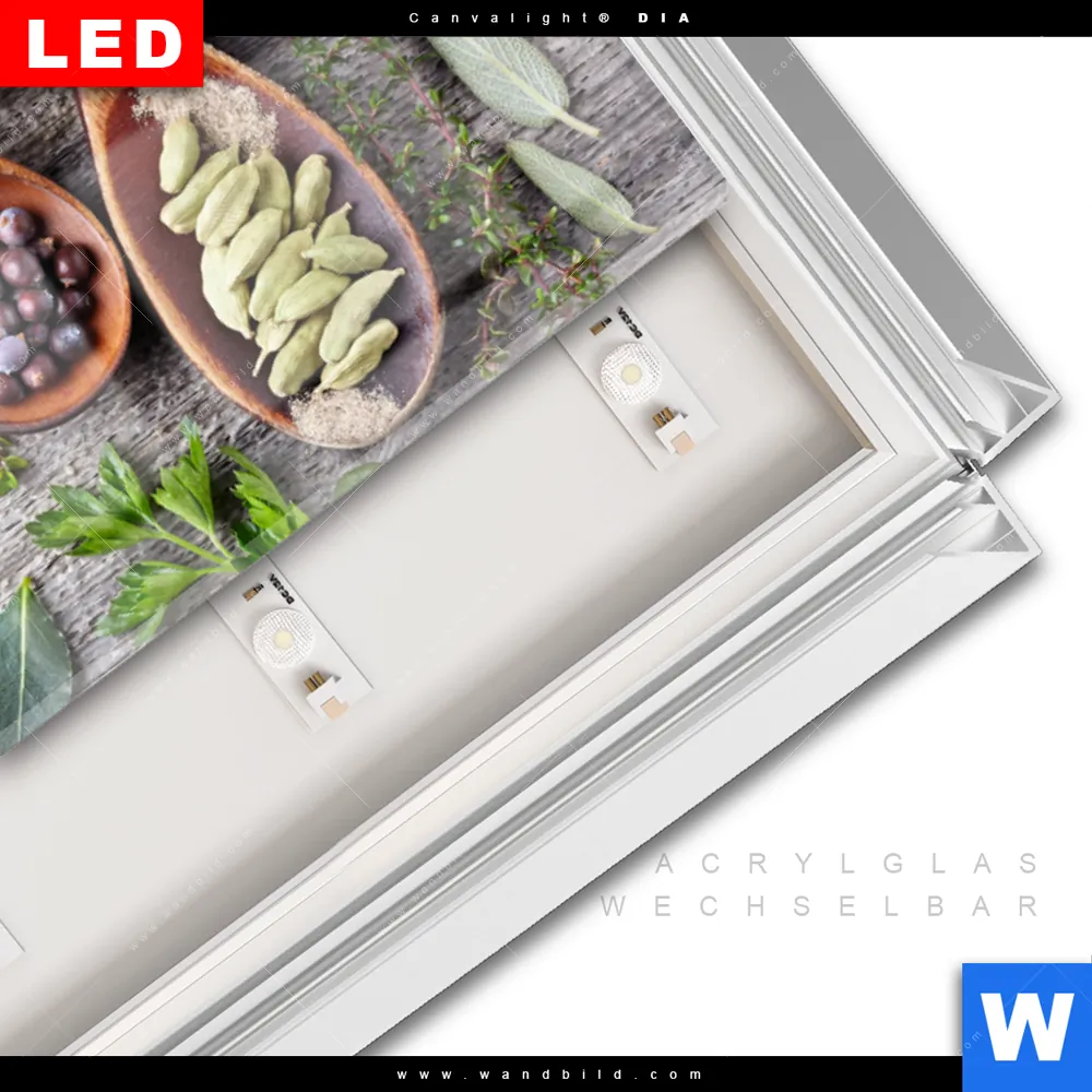 LED-Glasbild mit austauschbarem Acrylglas-Druck (Wechselbild)
