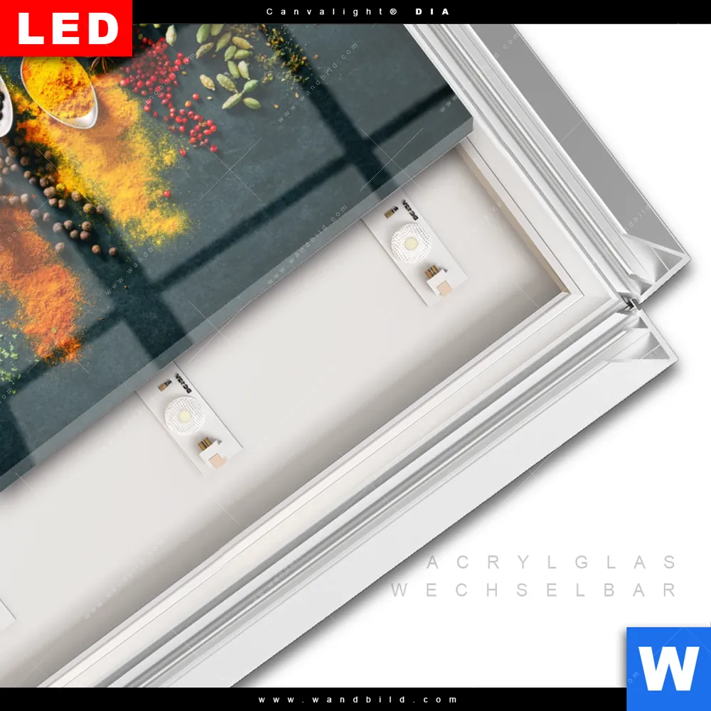 LED-Glasbild mit austauschbarem Acrylglas-Druck (Wechselbild)