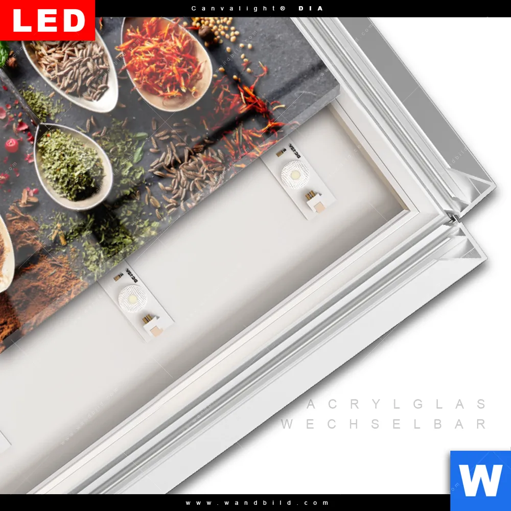 LED-Glasbild mit austauschbarem Acrylglas-Druck (Wechselbild)