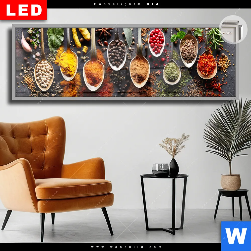 Canvalight® DIA Leuchtbild | Gewürze auf Löffeln No. 2 | Panorama