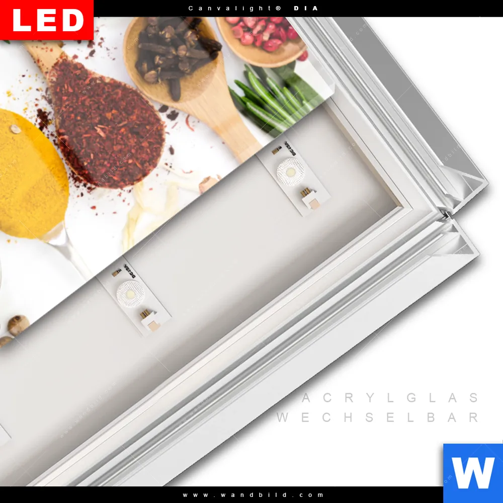LED-Glasbild mit austauschbarem Acrylglas-Druck (Wechselbild)