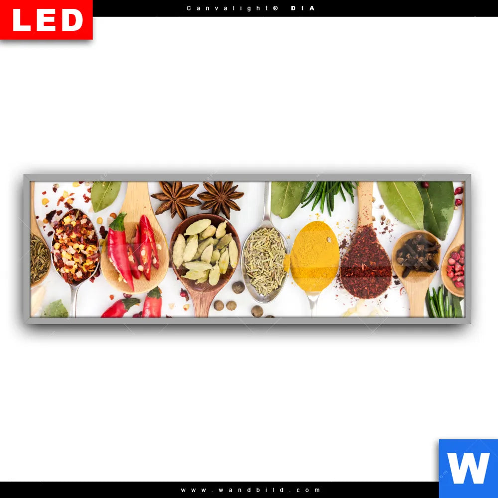 Canvalight® DIA Leuchtbild | Gewürze auf Löffeln - weiß | Panorama