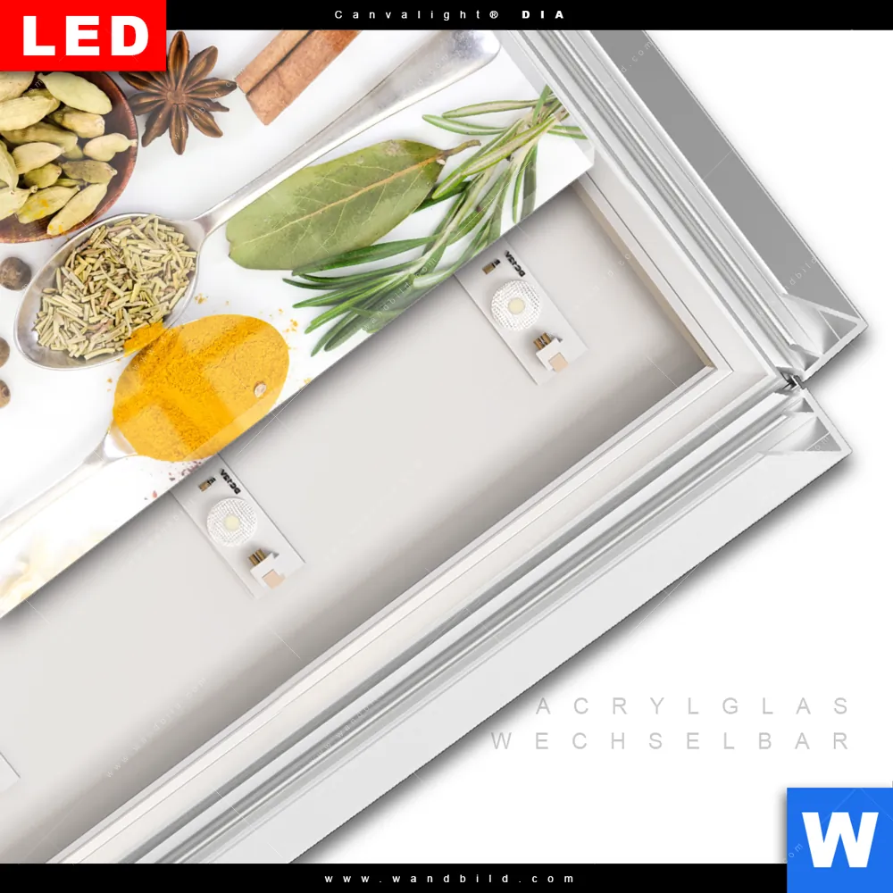 LED-Glasbild mit austauschbarem Acrylglas-Druck (Wechselbild)