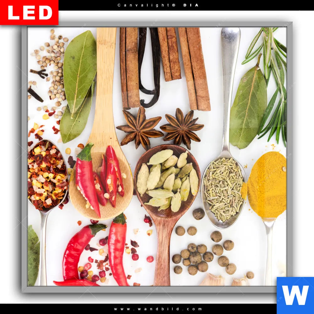 Canvalight® DIA Leuchtbild | Gewürze auf Löffeln - weiß | Quadrat