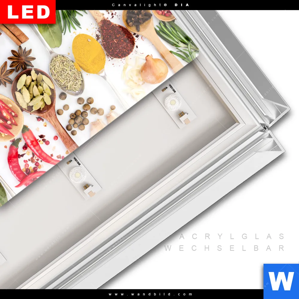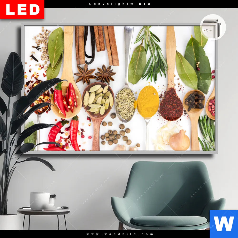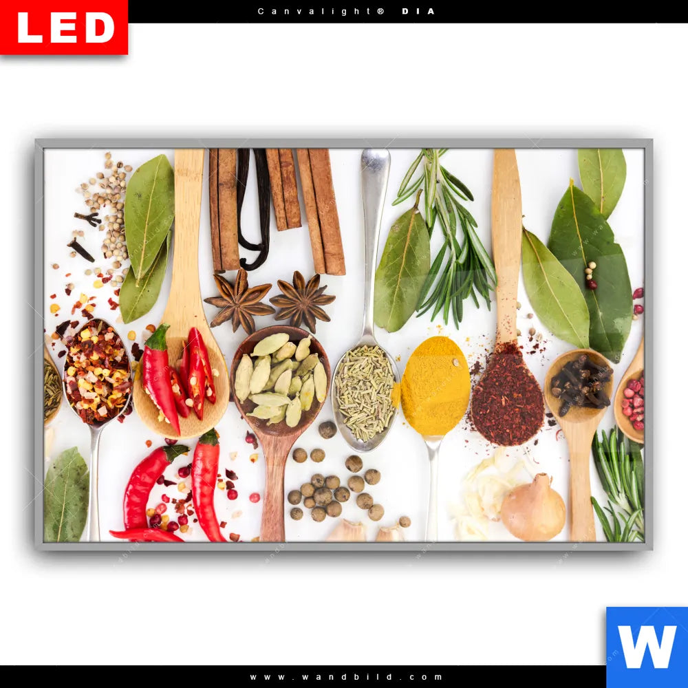 Canvalight® DIA Leuchtbild | Gewürze auf Löffeln - weiß | Querformat
