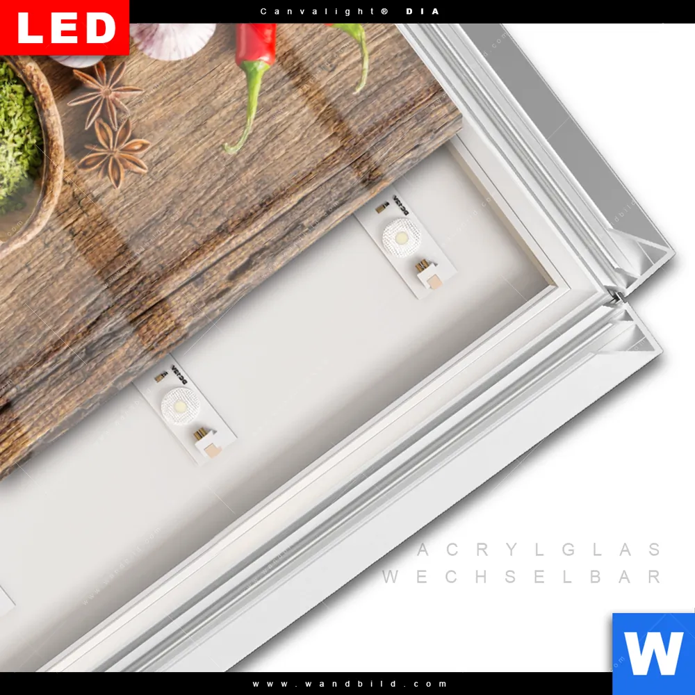 LED-Glasbild mit austauschbarem Acrylglas-Druck (Wechselbild)