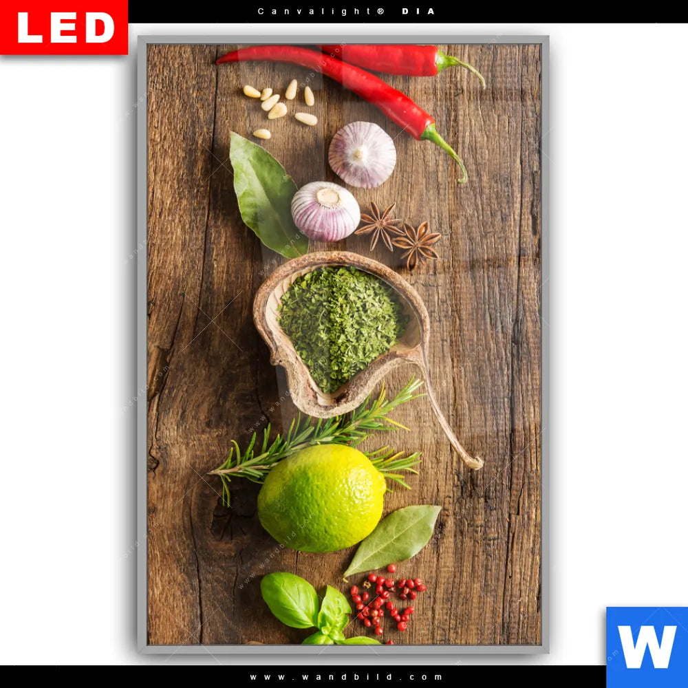 Canvalight® DIA Leuchtbild | Gewürze & Kräuter auf Holz | Hochformat