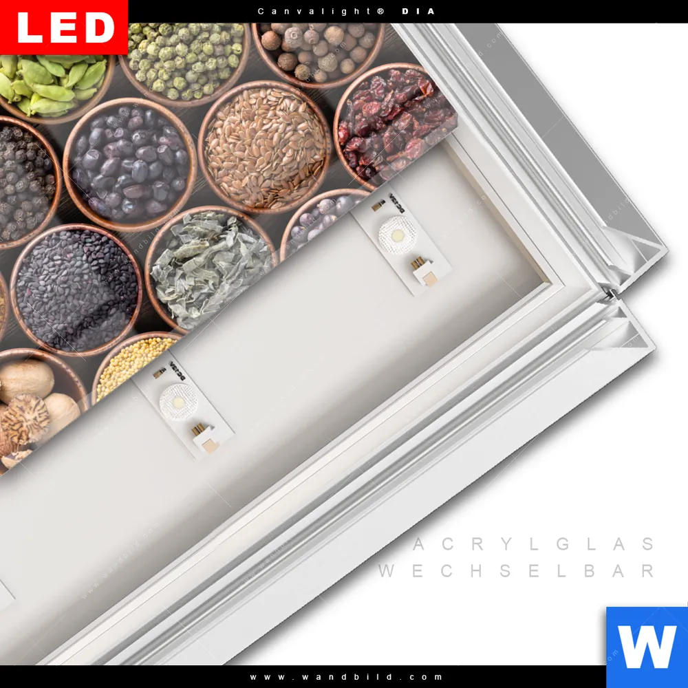 LED-Glasbild mit austauschbarem Acrylglas-Druck (Wechselbild)