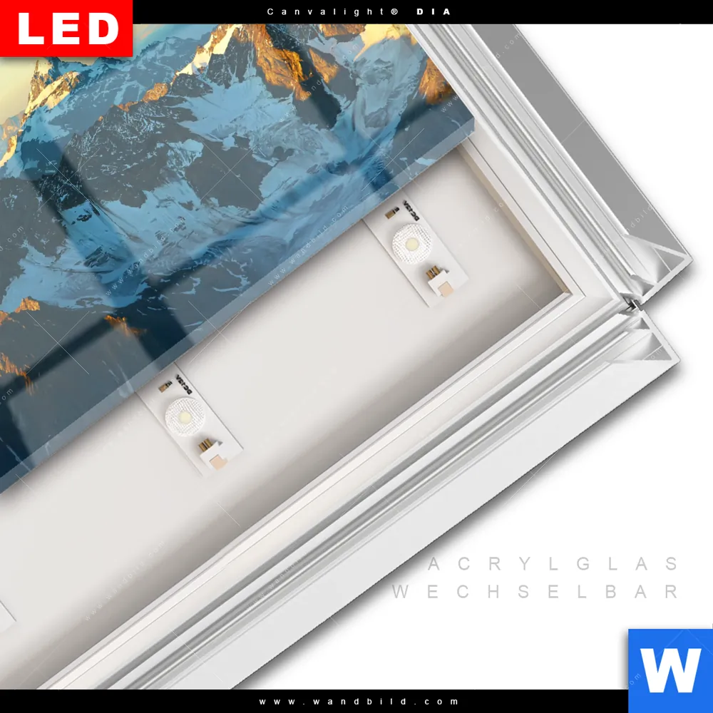 LED-Glasbild mit austauschbarem Acrylglas-Druck (Wechselbild)