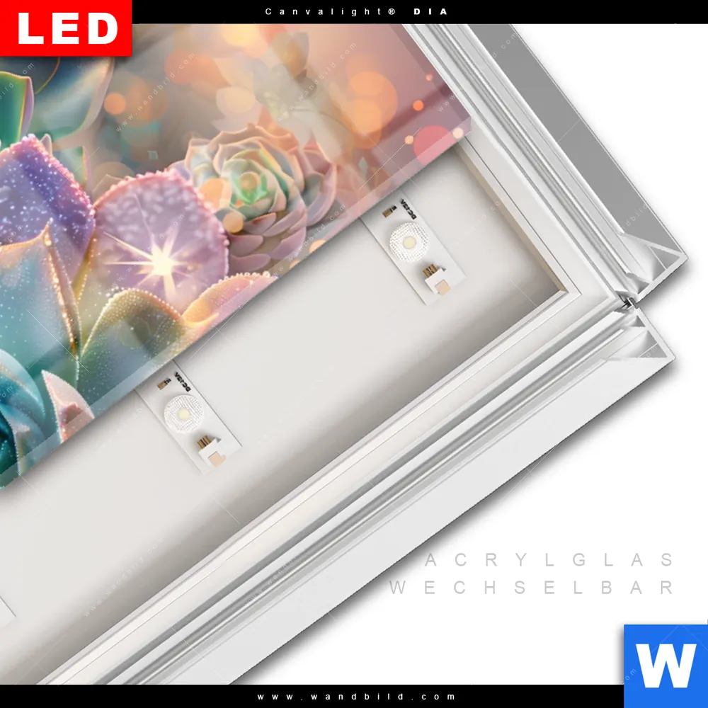 LED-Glasbild mit austauschbarem Acrylglas-Druck (Wechselbild)