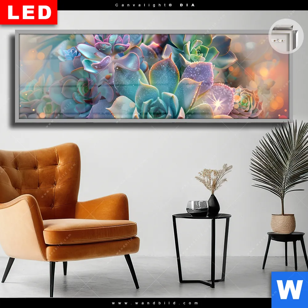 Canvalight® DIA Leuchtbild | Glänzende Sukkulenten | Panorama