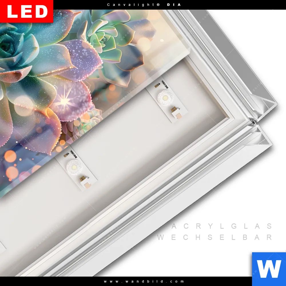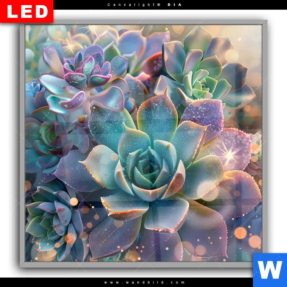 Canvalight® DIA Leuchtbild | Glänzende Sukkulenten | Quadrat