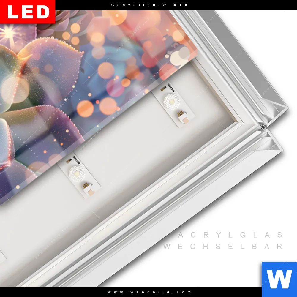 Canvalight® DIA Leuchtbild | Glänzende Sukkulenten | Schmal