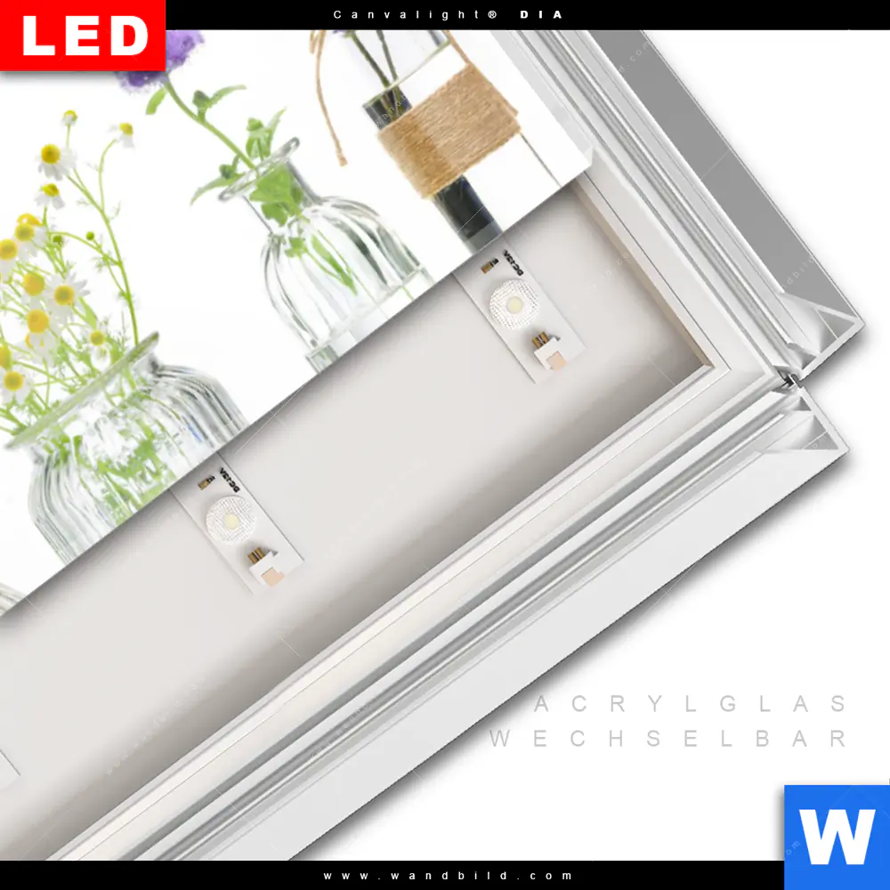 LED-Glasbild mit austauschbarem Acrylglas-Druck (Wechselbild)