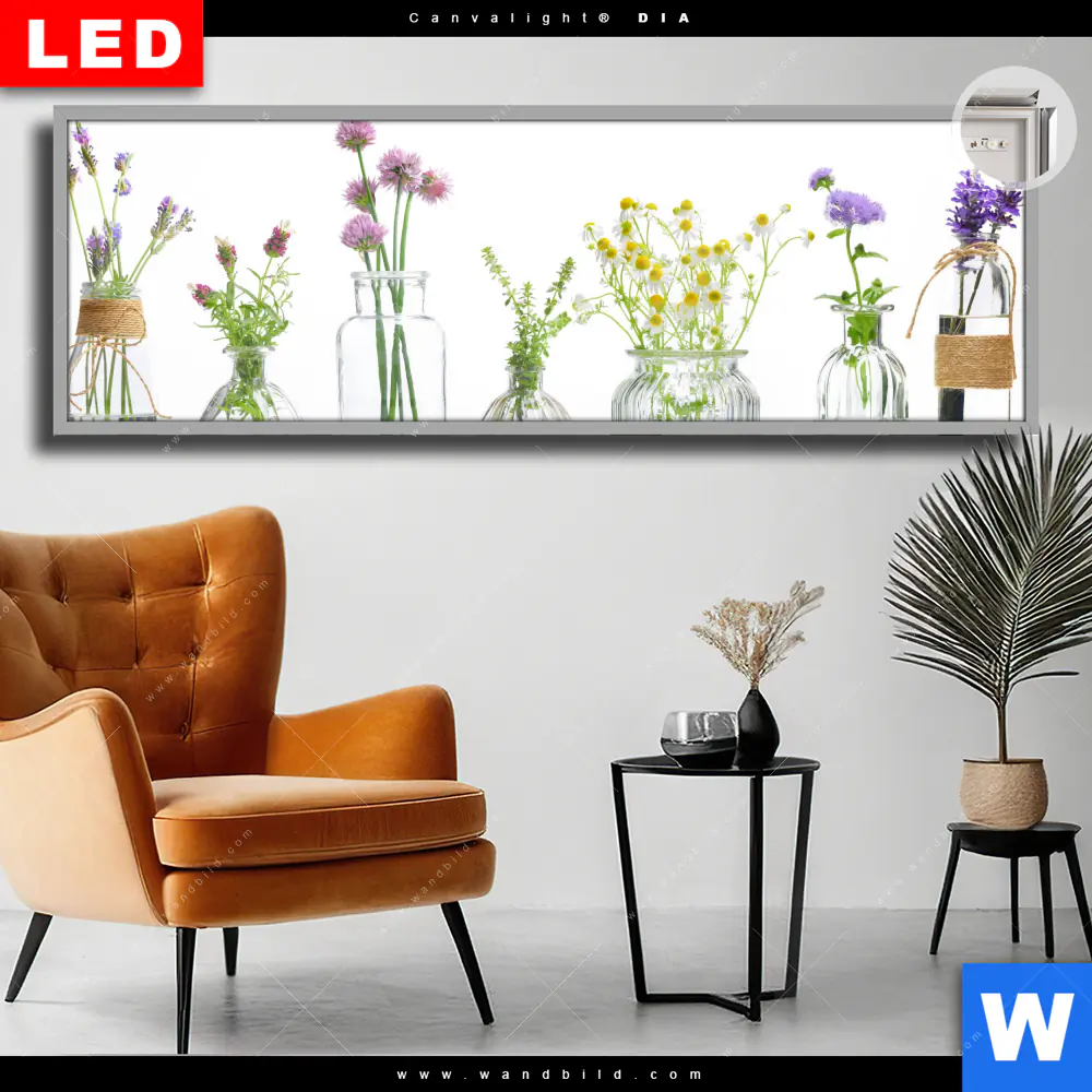 Canvalight® DIA Leuchtbild | Glasvasen mit Kräutern | Panorama