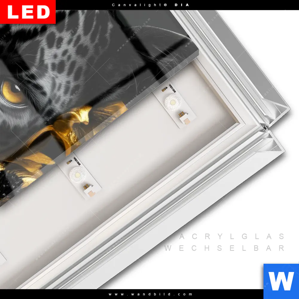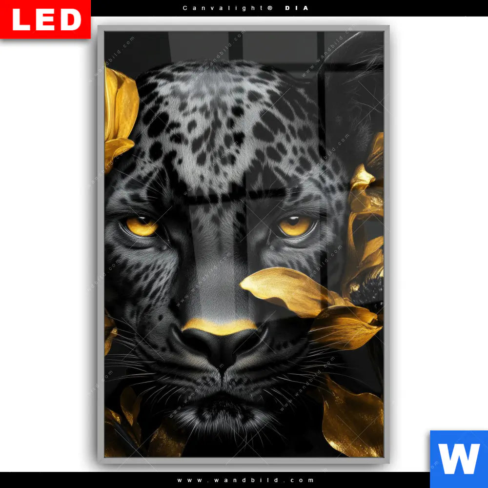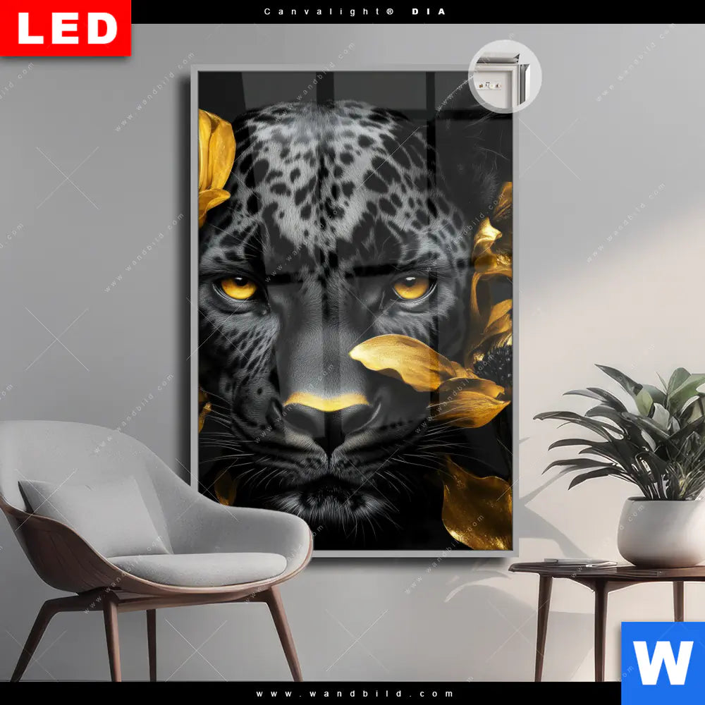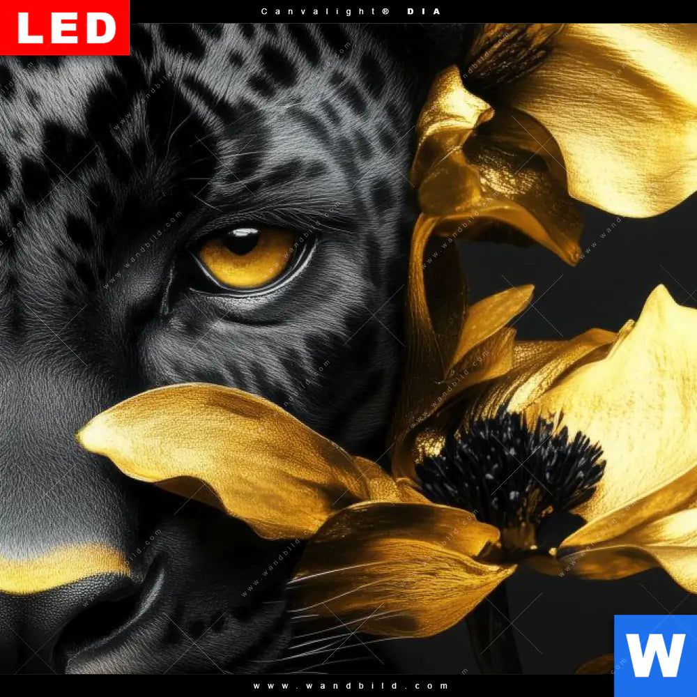 Canvalight® DIA Leuchtbild | Goldblumen & Panther | Hochformat